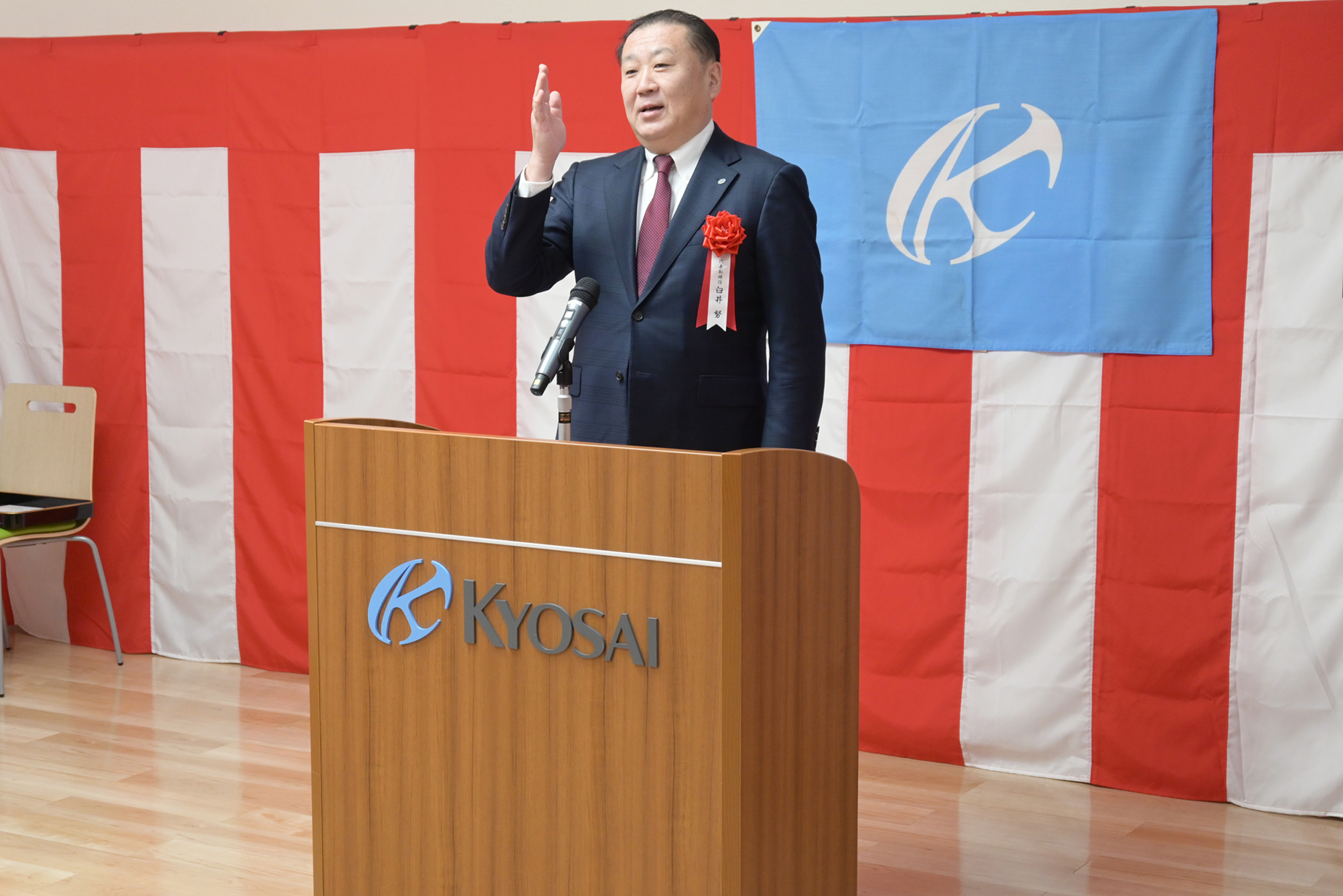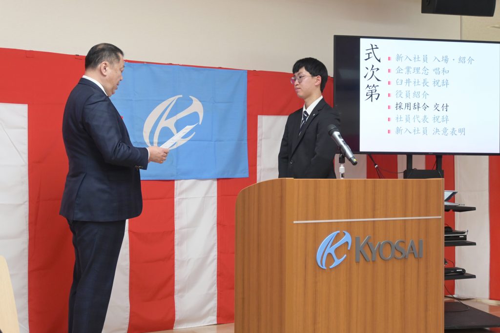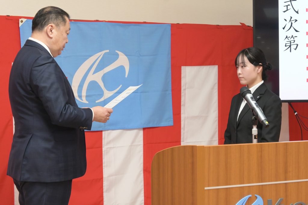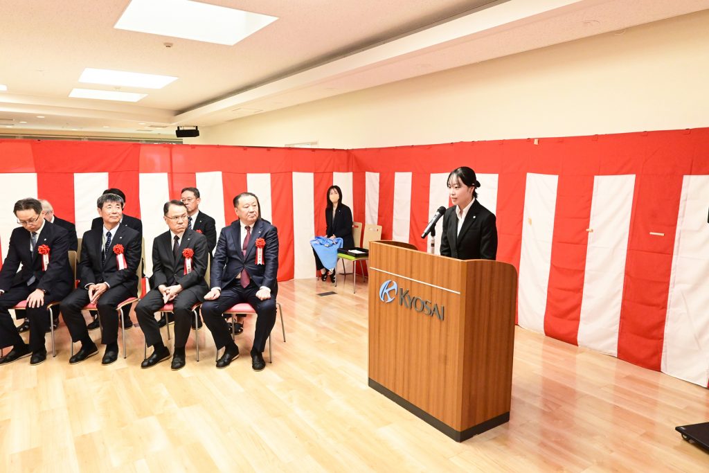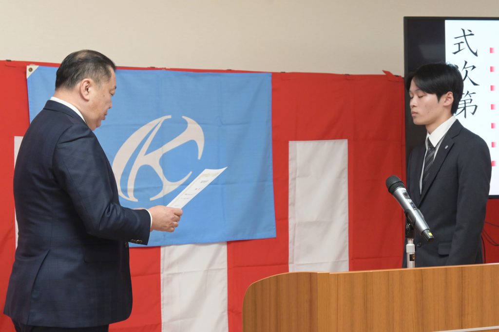 満開の桜が舞う4月1日、京西テクノスでは2026年度入社式を執り行い、