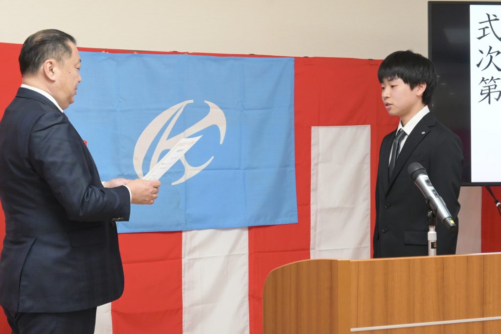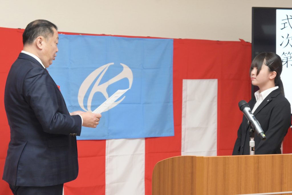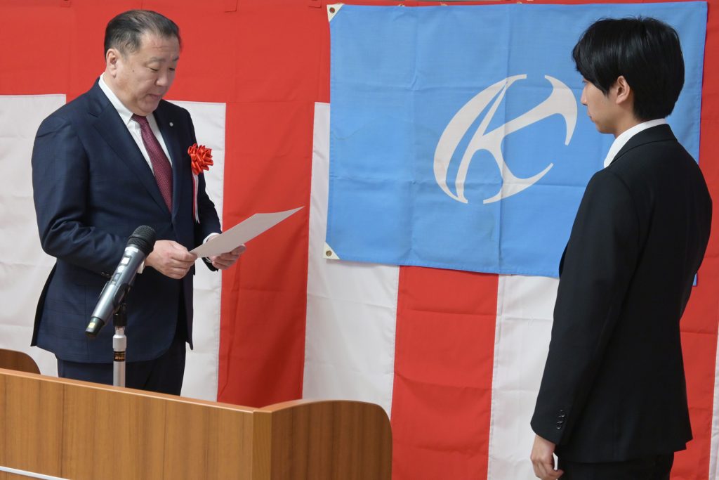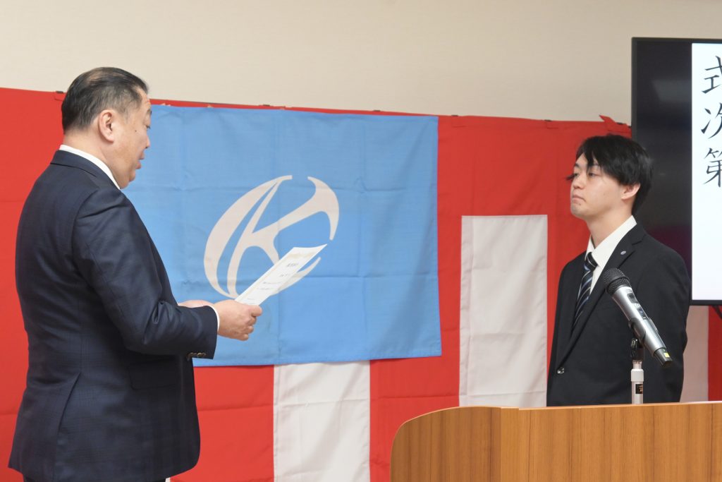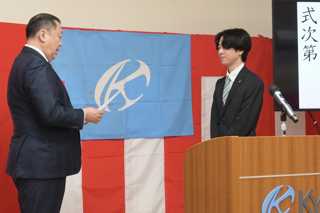 満開の桜が舞う4月1日、京西テクノスでは2026年度入社式を執り行い、